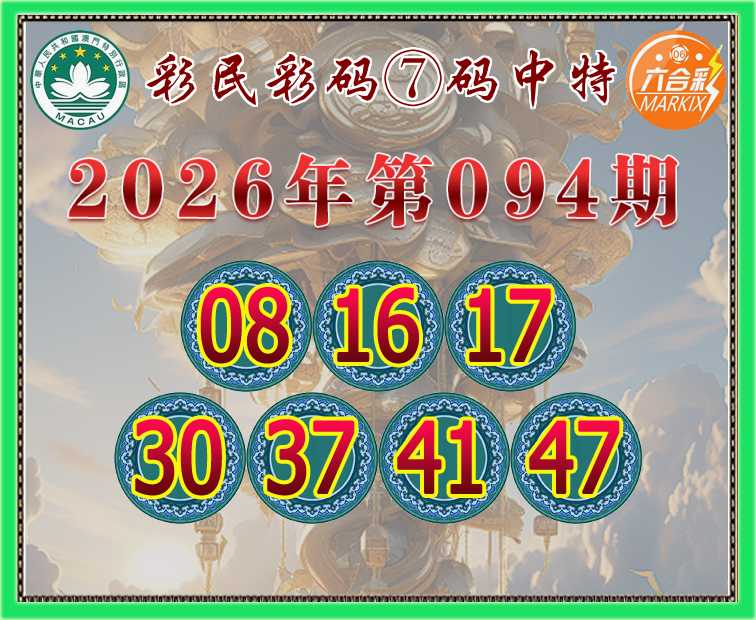 094期: 彩民彩码 🍃⑦码中特🍃【08.16.17.30.37.41.47】开:17准