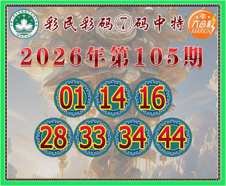 105期: 彩民彩码 🍃⑦码中特🍃【01.14.16.28.33.34.44】开:28准
