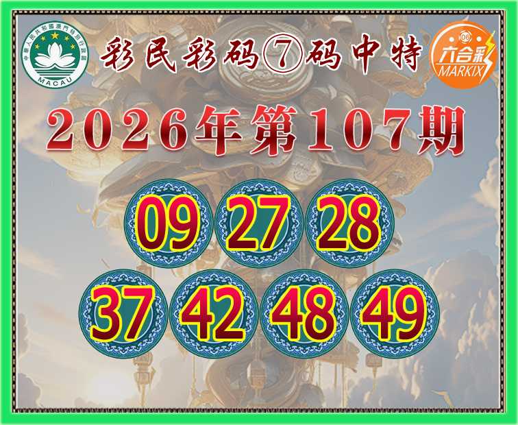 107期: 彩民彩码 🍃⑦码中特🍃【09.27.28.37.42.48.49】开:49准