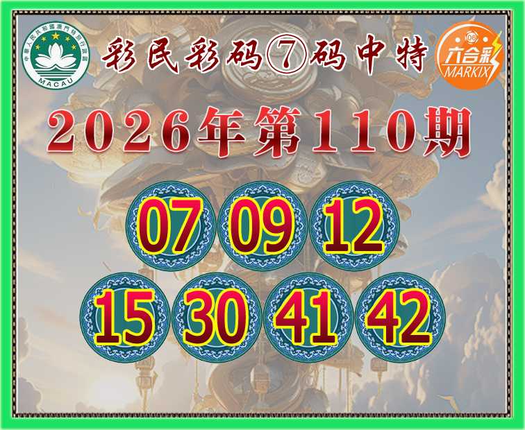 110期: 彩民彩码 🍃⑦码中特🍃【07.09.12.15.30.41.42】开:30准