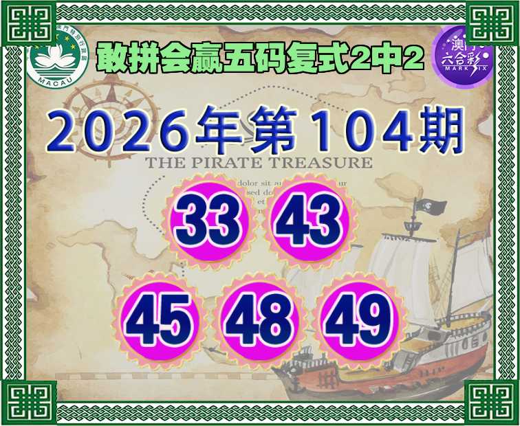 108期:【敢拼会赢】 🥖五码复式2中2🥖
