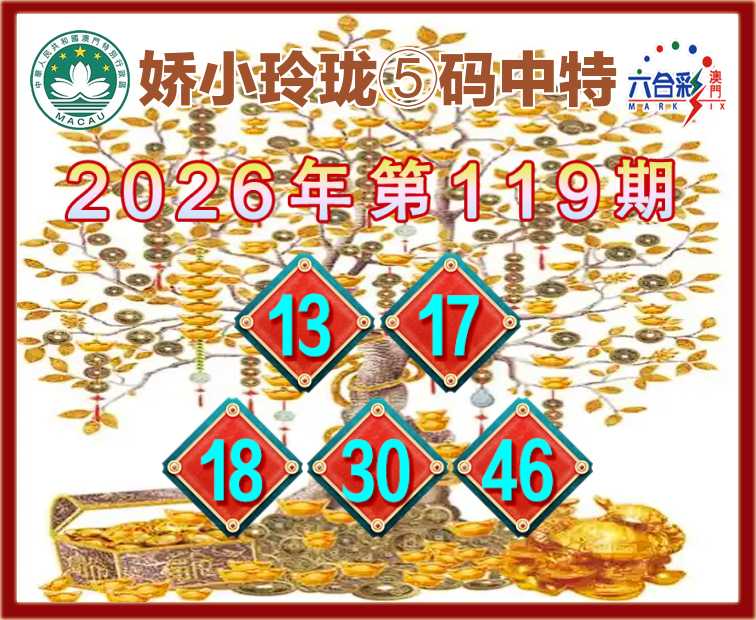 119期: 🐁『娇小玲珑』 🐁⑤码中特🐁【13.17.18.30.46】开:00准